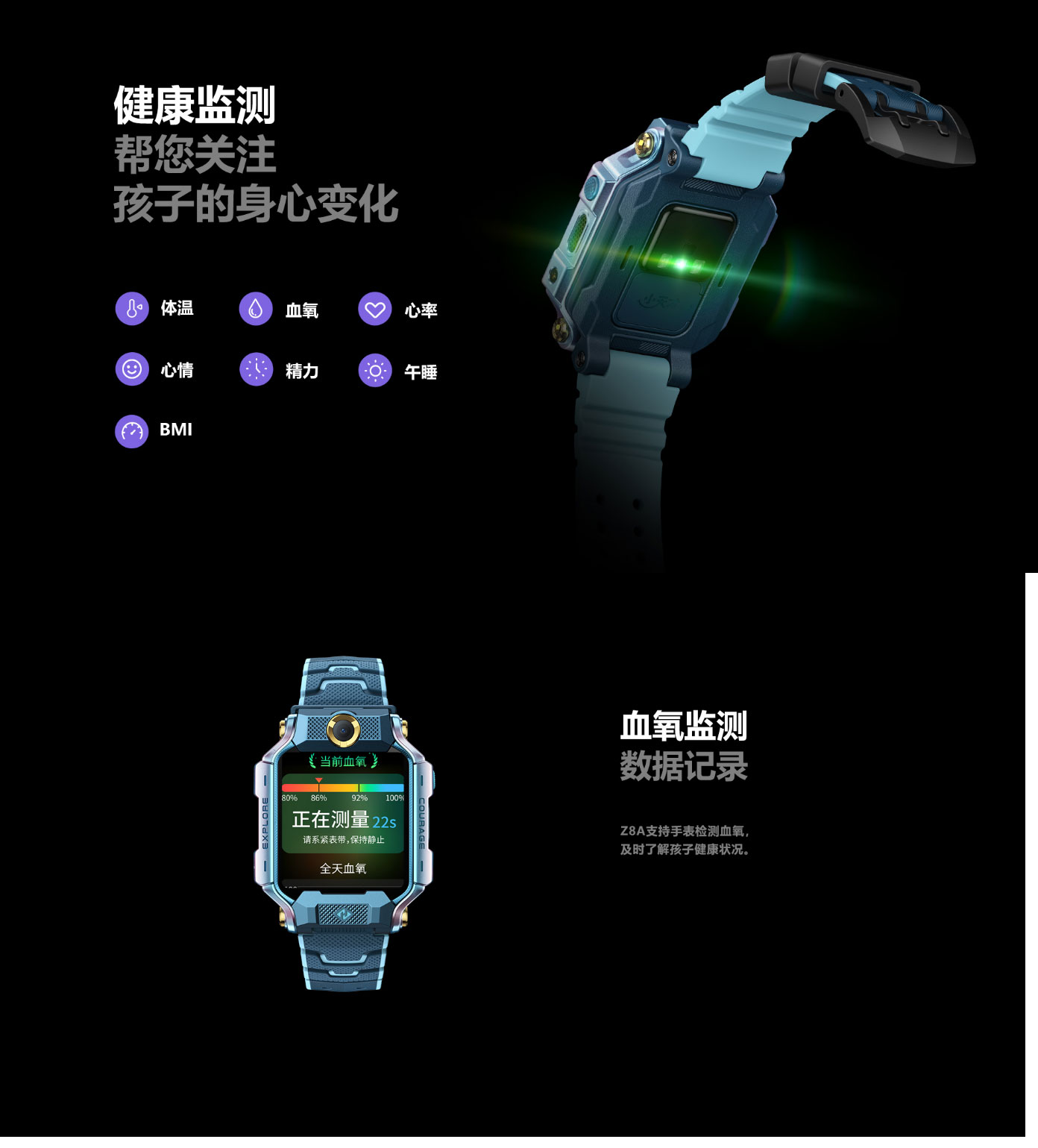 記步,運動監(jiān)測,血氧檢測,心率監(jiān)測,睡眠監(jiān)測,定位追蹤,數(shù)據(jù)記錄,來電信息提醒,撥號通話,時間鬧鐘