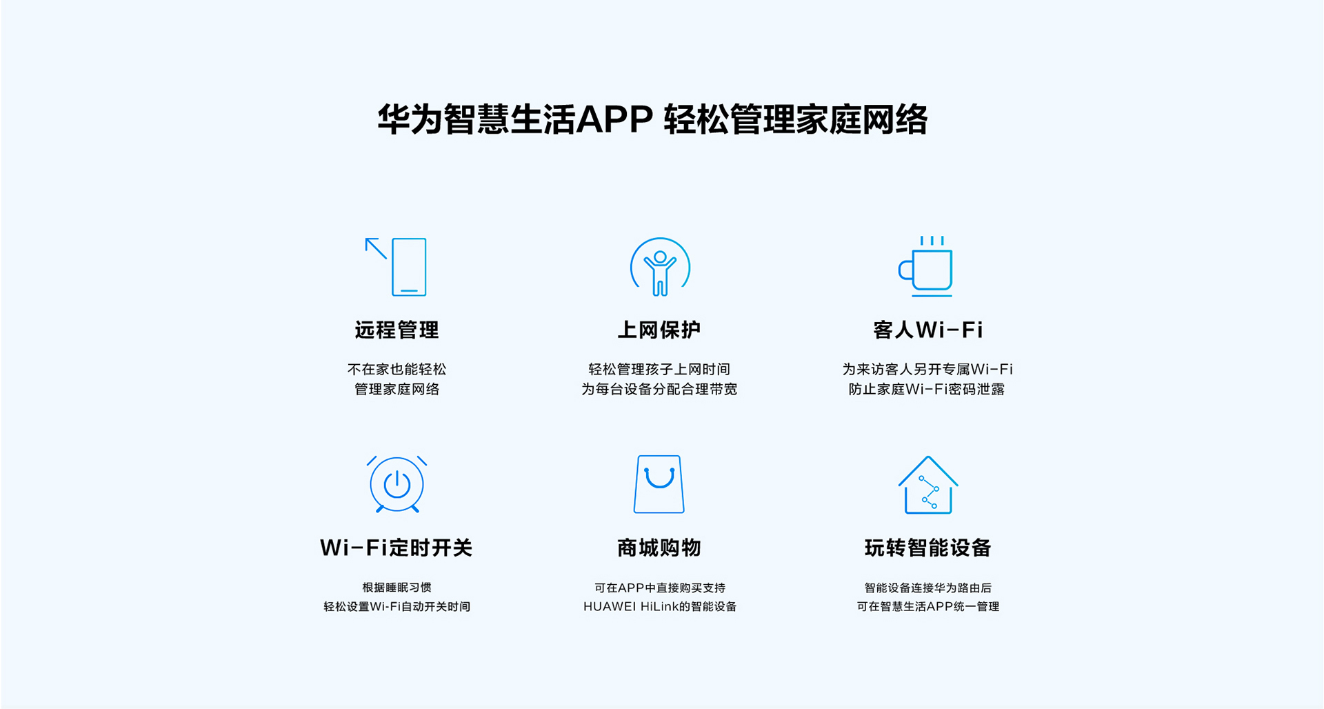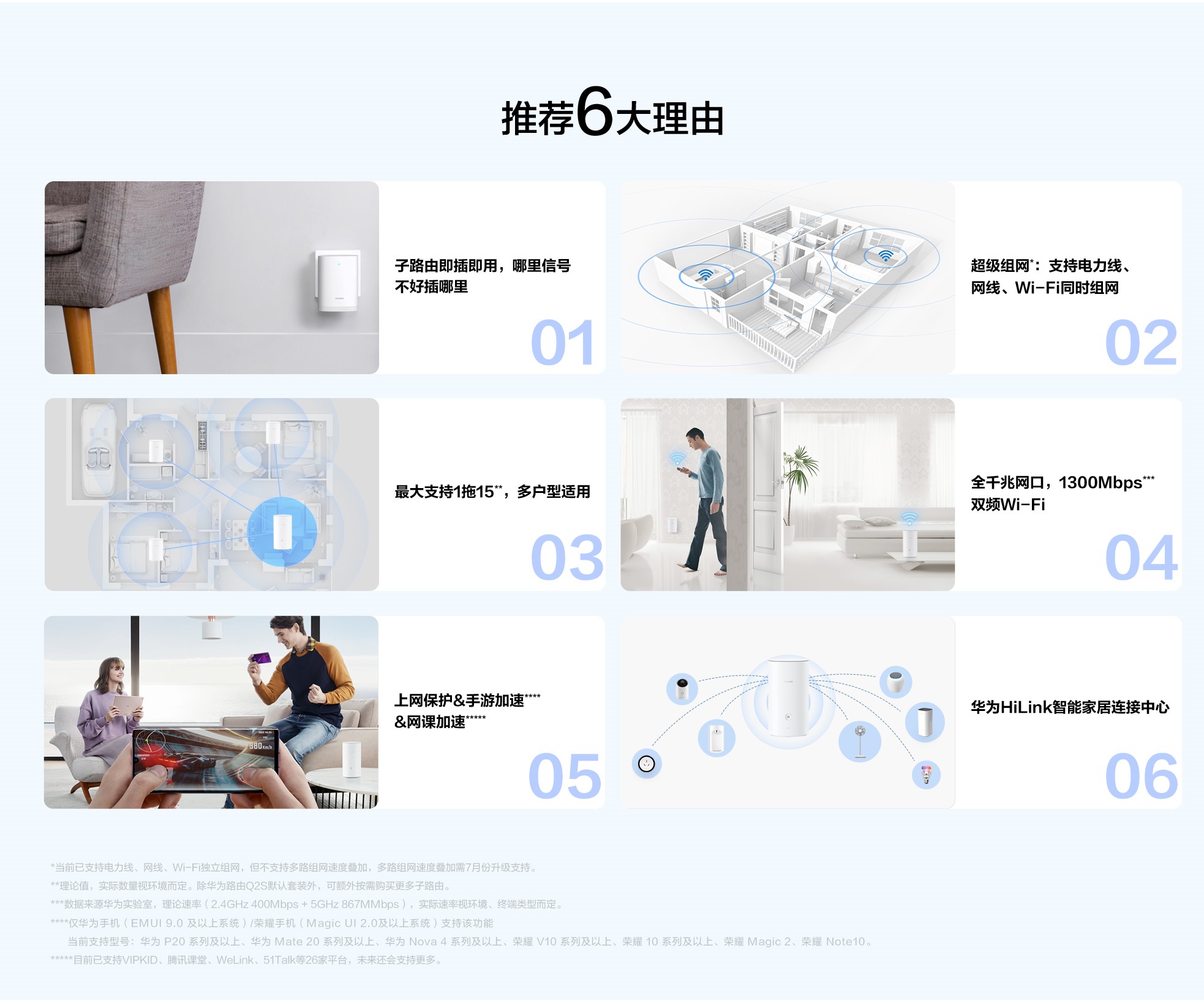 更多功能子母路由支持混合組網(wǎng)(電力線組網(wǎng),以太線組網(wǎng)、Wi-Fi 2.4G/5GHz組網(wǎng))、無縫漫游、即插即用、雙頻優(yōu)選、兒童/老人上網(wǎng)保護(hù)、手游加速、網(wǎng)課加速、雙頻優(yōu)選、網(wǎng)口盲插、信道適時(shí)自動(dòng)優(yōu)化、華為HiLink智能家居、802.11v、IPv4/IPv6、PPPoE/DHCP/靜態(tài)IP/MAC地址克隆/Bridge WAN上網(wǎng)方式、Wi-Fi定時(shí)開關(guān)、客人Wi-Fi、連網(wǎng)設(shè)備管理、MAC地址過濾、VPN透?jìng)?、DMZ/虛擬服務(wù)器等功能